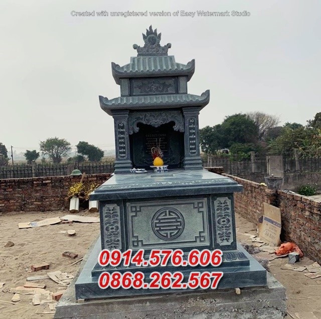 Mộ mồ mả đá xanh hai mái cất giữ để đựng hũ hộp tro hài cốt gia đình ông bà bố mẹ ba má dòng họ đẹp bán tại bình phước