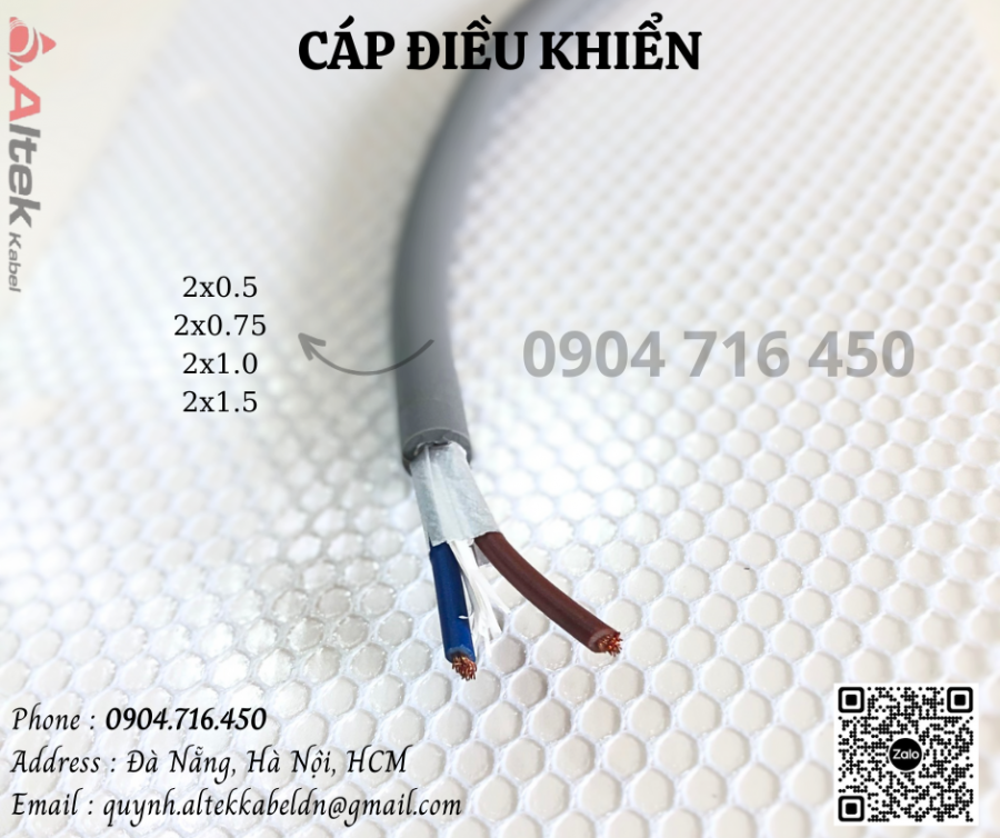 Công ty TNHH TM Altek Kabel chuyên nhập khẩu và phân phối các loại Cáp điều khiển Altek Kabel 2 lõi có lưới đồng đan chống nhiễu với các tiết diện từ 0.5 - 1.5mm2.