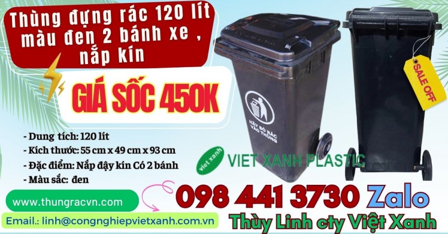 Loa loa giá sốc Thùng đựng rác 120 lít nắp kín 2 bánh xe màu đen