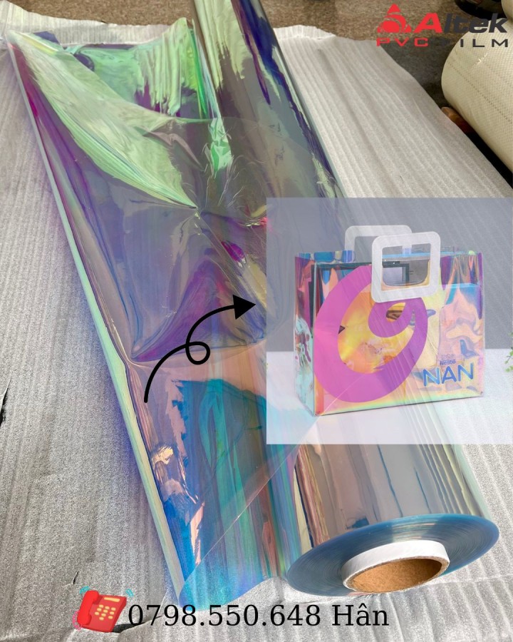 Màng Hologram 7 màu hàng có sẵn tại kho Quy cách 0.36mm x 1m37 x 50m 0.40mm x 1m37 x 50m Công dụng của màng.... Sản xuất áo mưa, ô dù Làm balo, túi xách Làm bao bì, giày, dép, móc khóa nhiều màu sắc.... CÔNG TY TNHH ALTEK PVC FILM HOTLINEZALO 0798.550.648 Hân ĐỊA CHỈ CN 1 Số 6 ngõ 134 phố sài đồng, Quận Long Biên, Hà Nội CN 2 Số 13 đường 49B phường Tân Tạo , quận Bình Tân, TP. Hồ Chí Minh