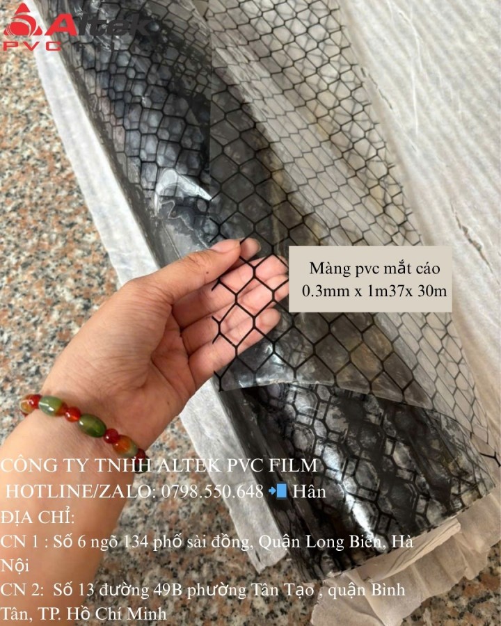 Màng mắt cáo chống tĩnh điện hàng có sẵn tại kho TP.HCM amp Hà Nội Quy cách 0.30mm x 1m37 x 30m 0.50mm x 1m37 x 30m Cuộn nhựa PVC chống tĩnh điiện mắt cáo là sản phẩm sử dụng mực dẫn điện màu đen được in trên màng nhựa PVC trong suốt có tác dụng chống tĩnh điện tốt giúp bề mặt sản phẩm lưới dẫn điện tốt hơn, chống tích tụ và xả tĩnh điện ào hệ thống hoặc mặt điện. Màng nhựa PVC mắt cáo giống như một bề mặt thảm mỏng ...