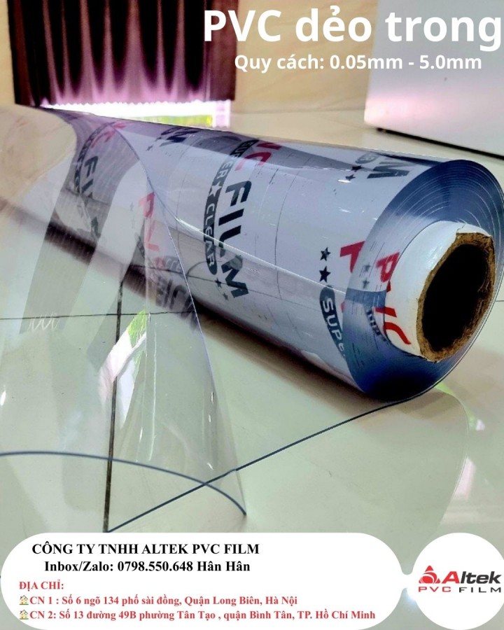 Màng PVC dẻo là vật liệu được sử dụng phổ biến trong nhiều lĩnh vực nhờ độ bền cao, dẻo dai và tính ứng dụng linh hoạt. Bên mình cung cấp màng PVC dẻo với đầy đủ độ dày từ 0.05mm đến 5mm, đáp ứng mọi nhu cầu sử dụng của khách hàng.