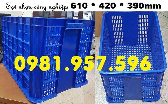 Sọt nhựa công nghiệp với kích thước lớn và tay cầm 2 đầu chắc chắn thích hợp để những hàng hóa nặng và cồng kềnh, thuận tiện cho việc bê/vác hàng hóa: bánh kẹo, quần áo, phụ kiện may mặc, giày dép...