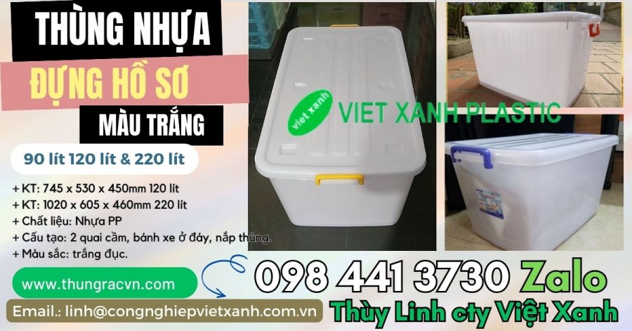 Rao vặt Hợp tác, kinh doanh Thùng nhựa đựng hồ sơ , thùng nhưa trắng đa nâng 90 lít 120 lít 220 lít