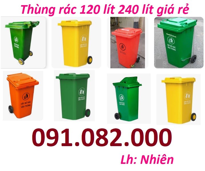 Thùng rác 120 lít, 240 lít màu xanh, cam, vàng giá rẻ tại đồng tháp-thùng đựng r