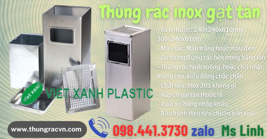 - Phía trên nắp thùng rác inox được chia làm hai ngăn. Một ngăn là khay gạt tàn thuốc và ngăn còn lại là cửa bỏ rác. Thiết kế thông minh giúp người dùng thuận tiện khi dùng.